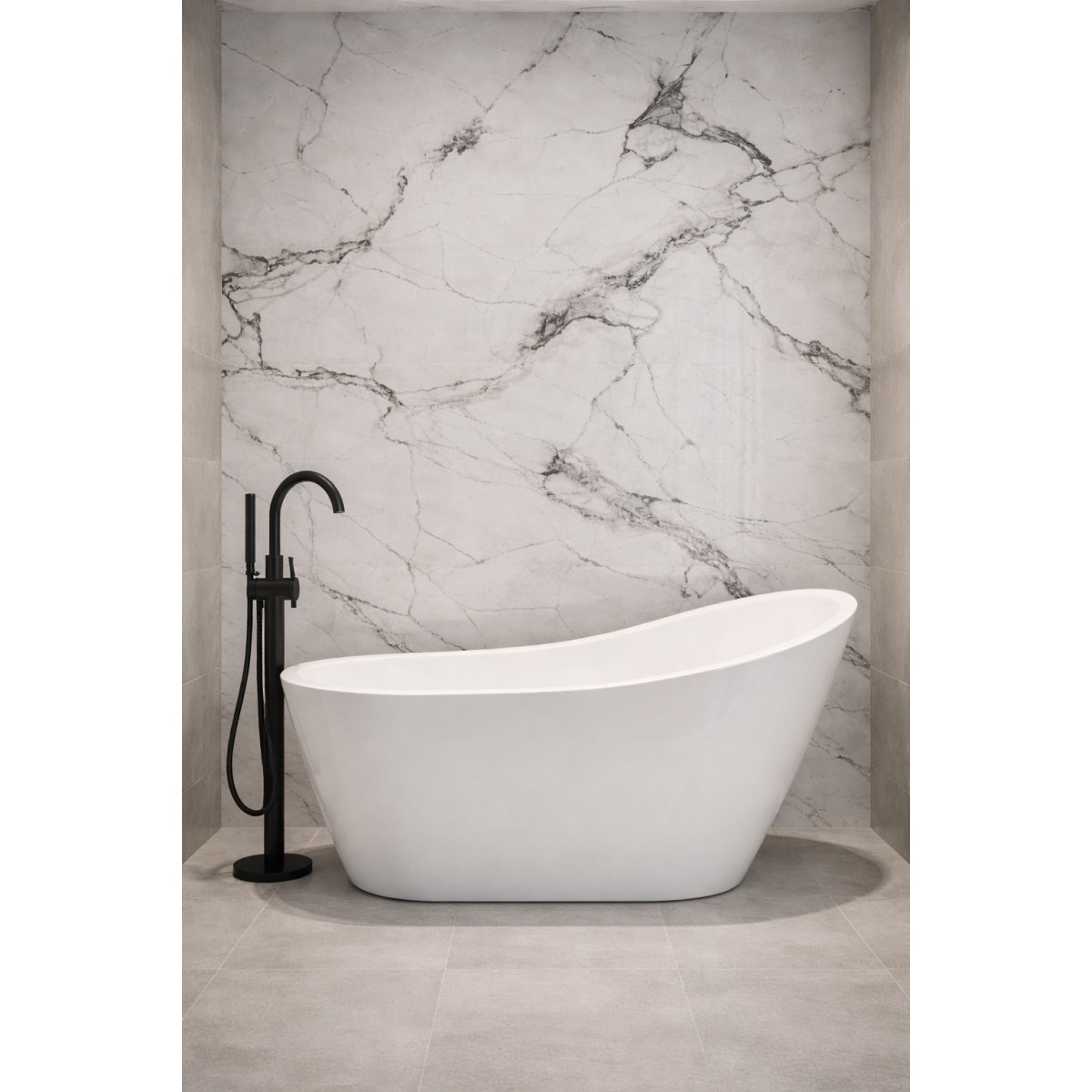 The Showerpanel in Invisible Marble finish offers a sophisticated, high-end look inspired by luxurious natural marble. Designed for a seamless, grout-free shower installation, this panel features elegant marble-style veining set against a refined light background, creating depth and movement while maintaining a clean, modern aesthetic. The Invisible Marble finish brings timeless style to bathrooms, making it suitable for both contemporary and classic interiors.