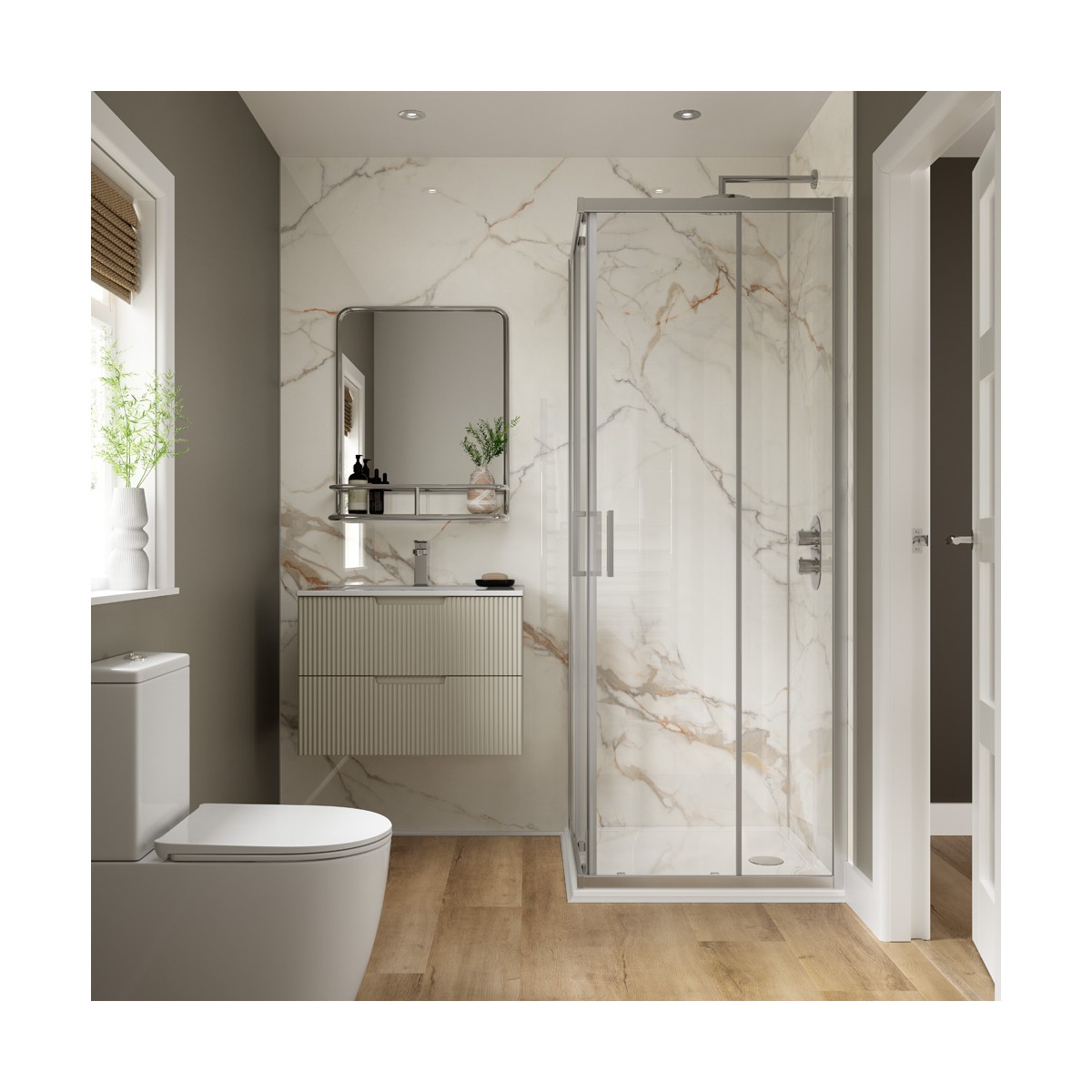 Made from high-performance SPC, Corinthia panels are fully waterproof and easy to clean. The grout-free design eliminates the common issues associated with tiled surfaces, such as staining and mould.