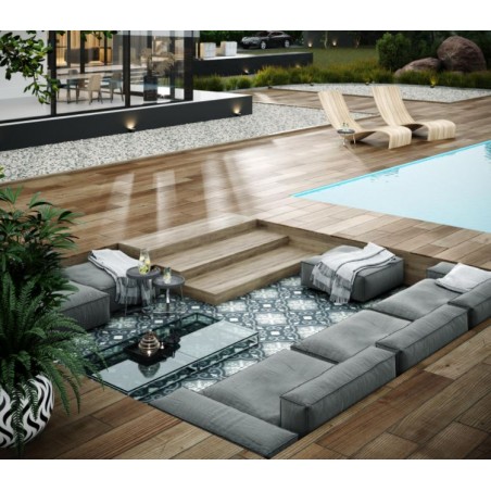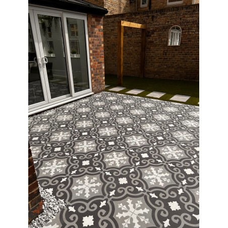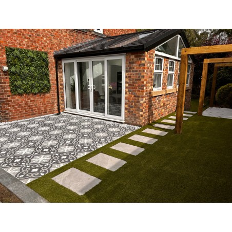 Theo is a new additon to our outdoor collection. This tile is a patterned outdoor porcelain, adding style and colour to your outdoor landscaped area. The pattern works well with plain orclain tiles also if you did want to combine both for an on trend look.