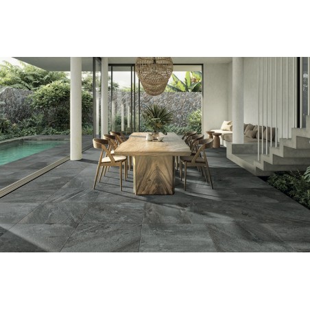 Rimini Anthracite XXL 60x60x2cm Porcelain Slate- Stone Floor Tile, Pack Of 1