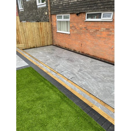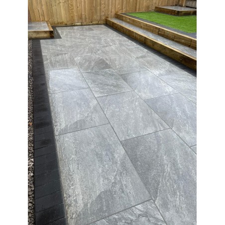 Transform your outdoor living space with the powerful, contemporary look of Pontus Nero Outdoor Porcelain Tiles, where style meets strength in every tile