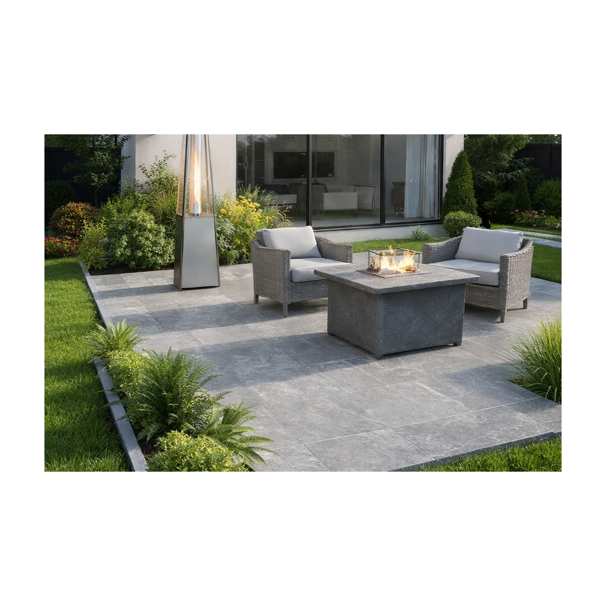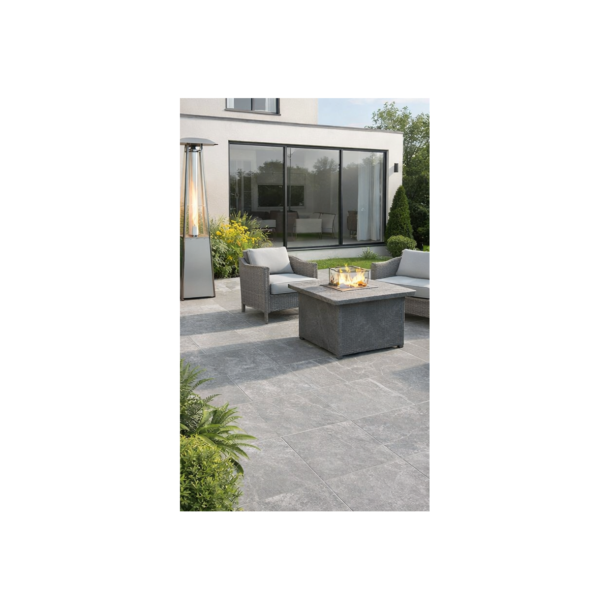 Grey outdoor porcelain tile delivers a sleek, contemporary finish suited to modern landscaping designs.