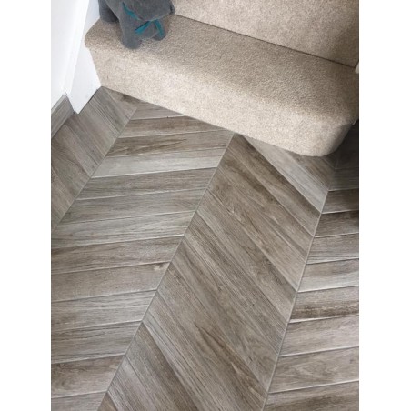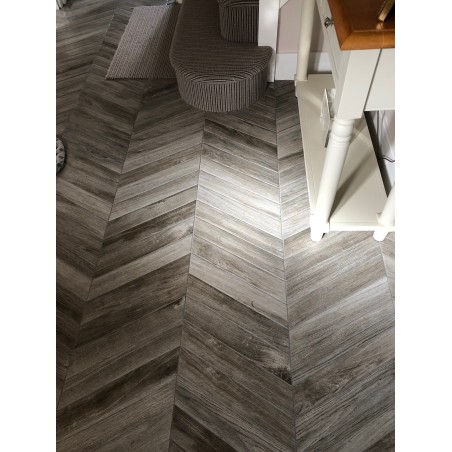 Old English Wood Cendre Chevron 7.5x40.7cm Porcelain Matt Wall-Floor Tile, Pack Of 26