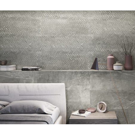 Nickon Décor is a ceramic decorative tile which pairs well with the Nickon porcelain tile to add a modern twist to your tiled space.